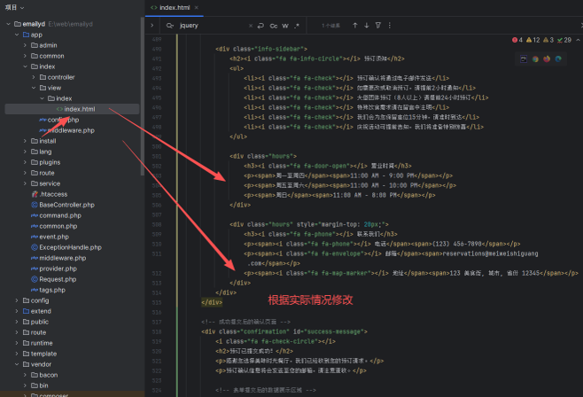 网站app/index/view/index/index.html文件是前台提交模板文件,可以根据自己需求修改